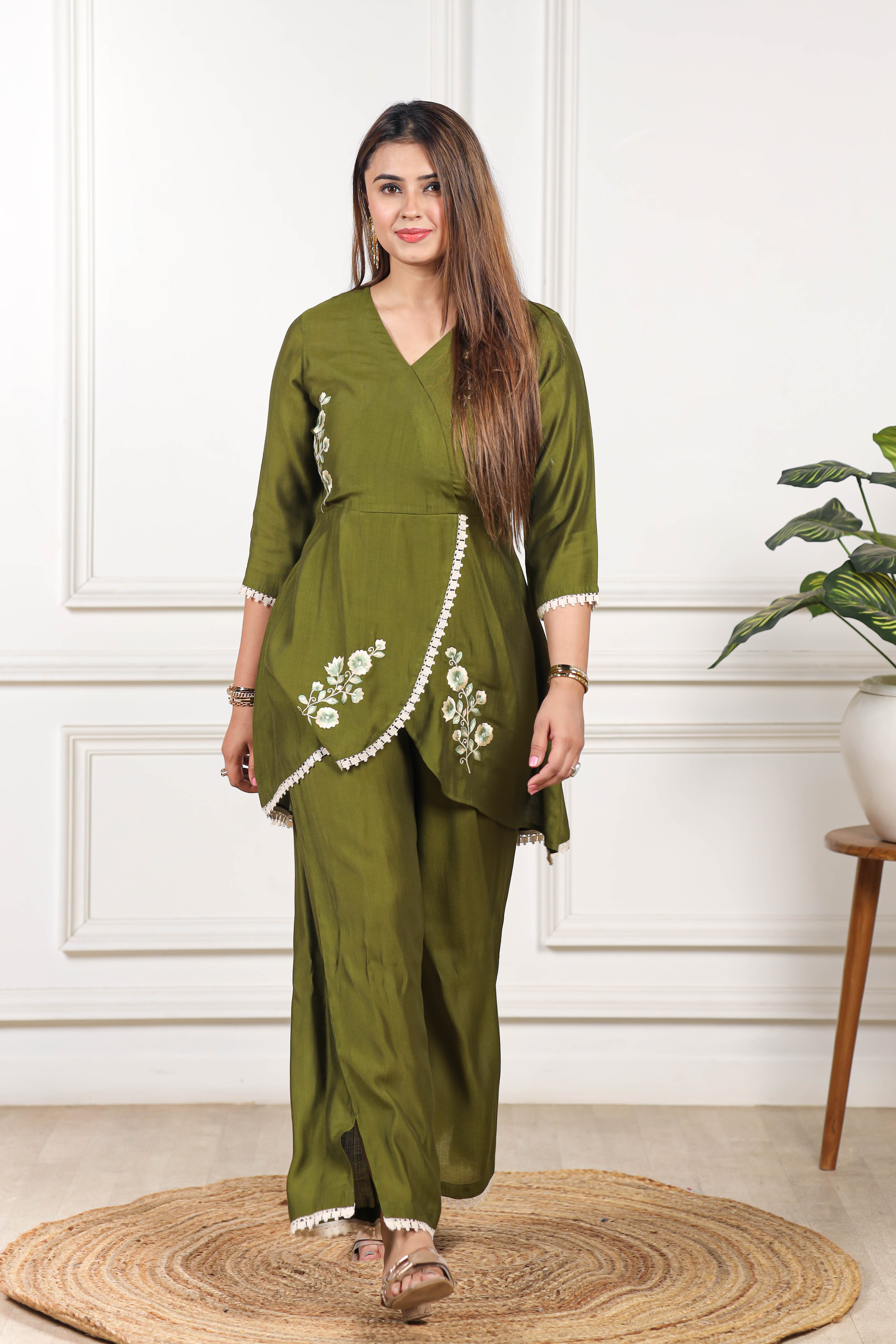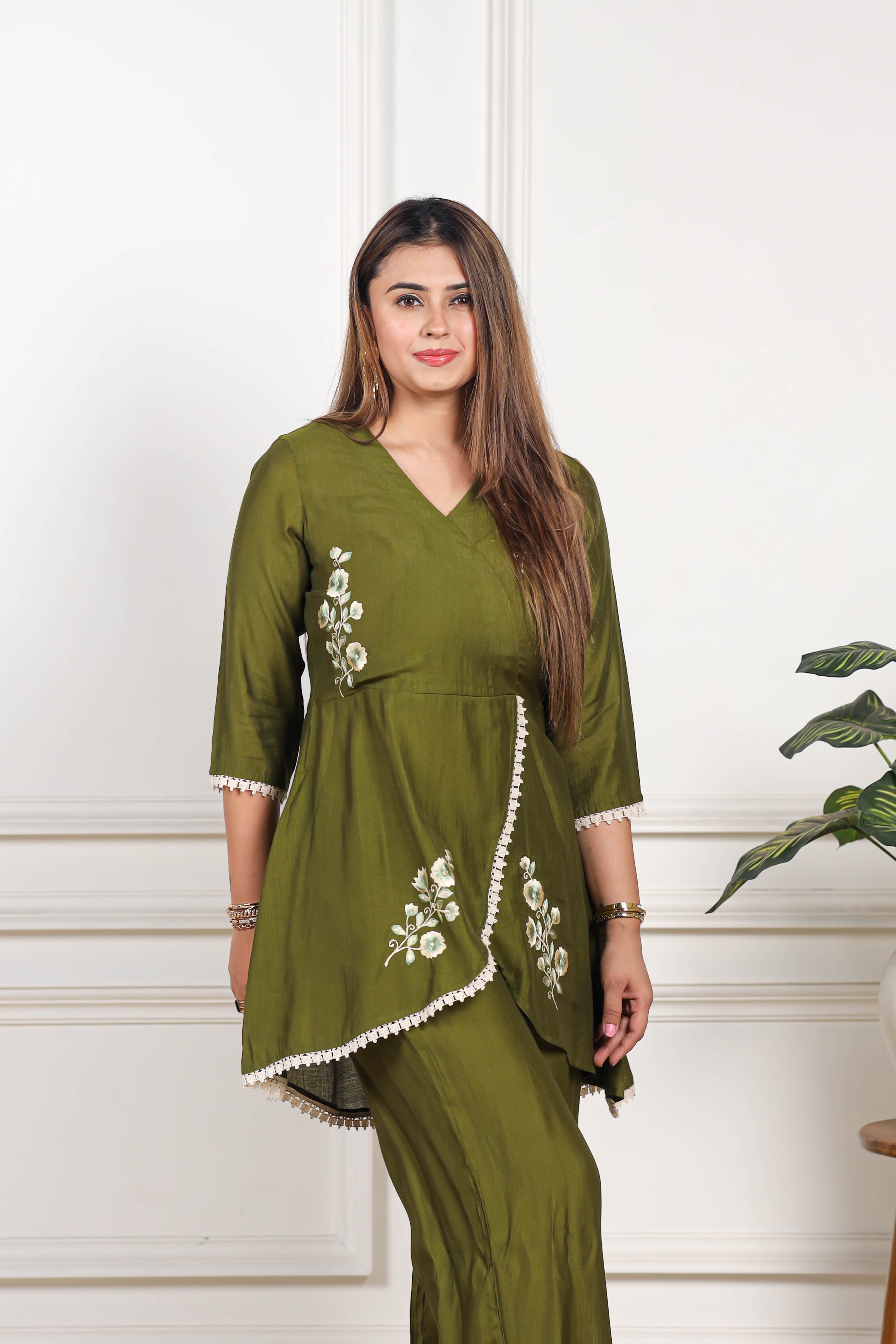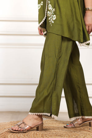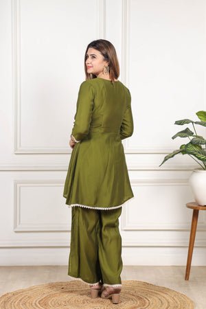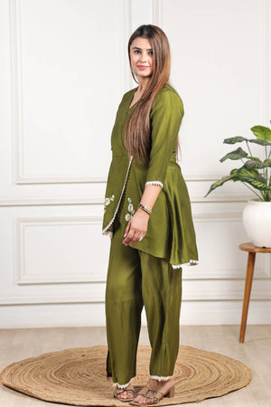 Embroidered Viscose goldy green co ord set
